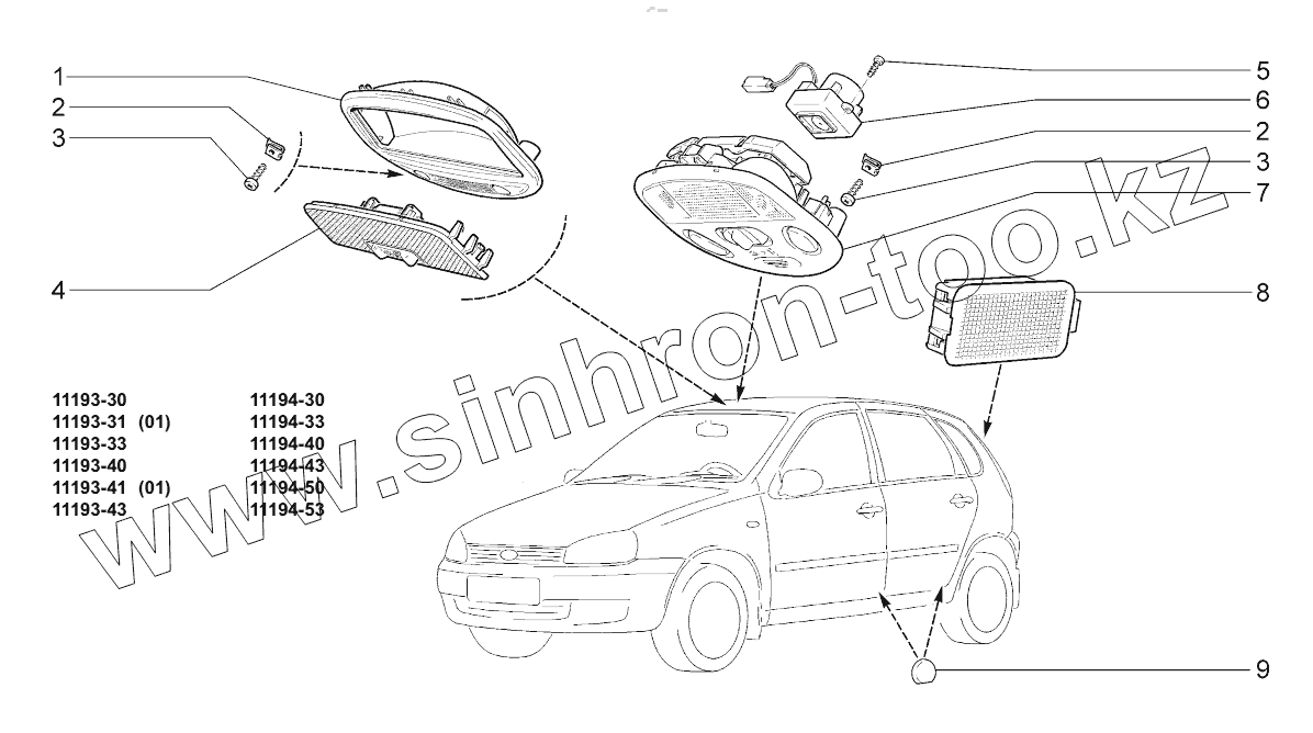 Каталог запасных частей к технике: ВАЗ LADA KALINA 1119. Освещение салона;Interior lighting