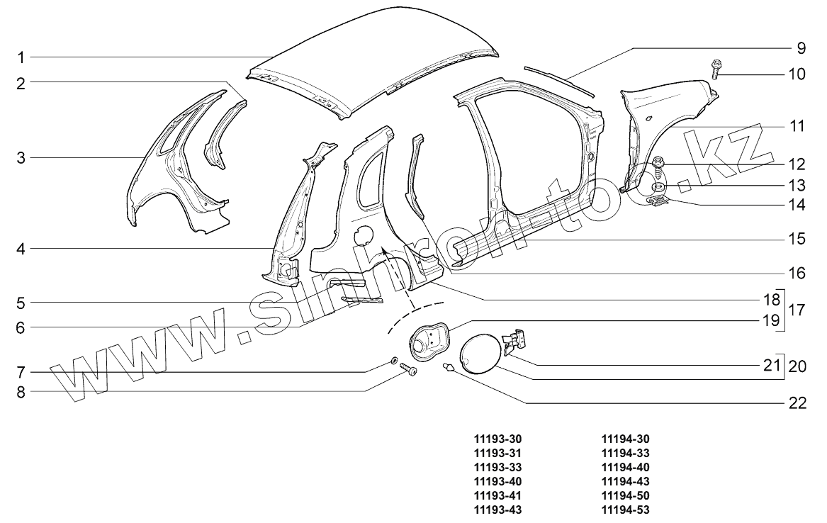 Каталог запасных частей к технике: ВАЗ LADA KALINA 1119. Панели кузова;Body panels