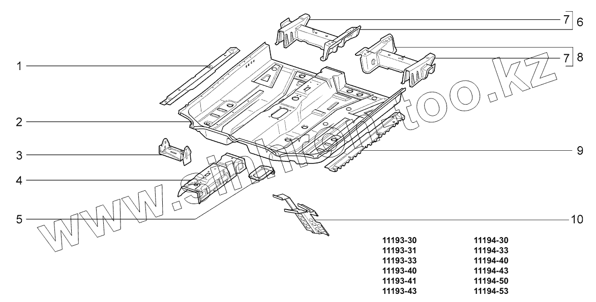 Каталог запасных частей к технике: ВАЗ LADA KALINA 1119. Пол передний;Front floor