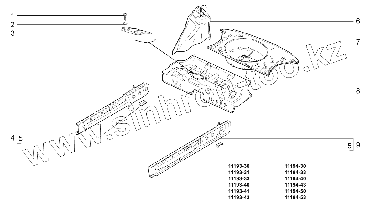 Каталог запасных частей к технике: ВАЗ LADA KALINA 1119. Пол задний;Rear floor