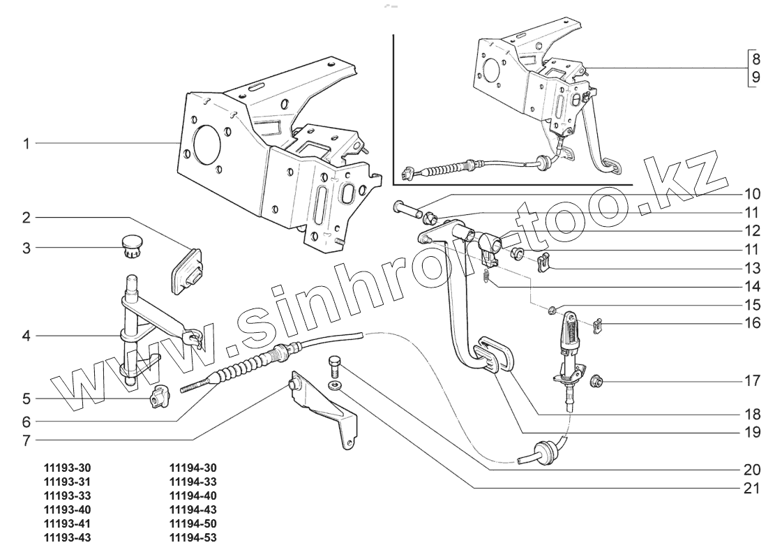 Каталог запасных частей к технике: ВАЗ LADA KALINA 1119. Привод сцепления;Clutch drive