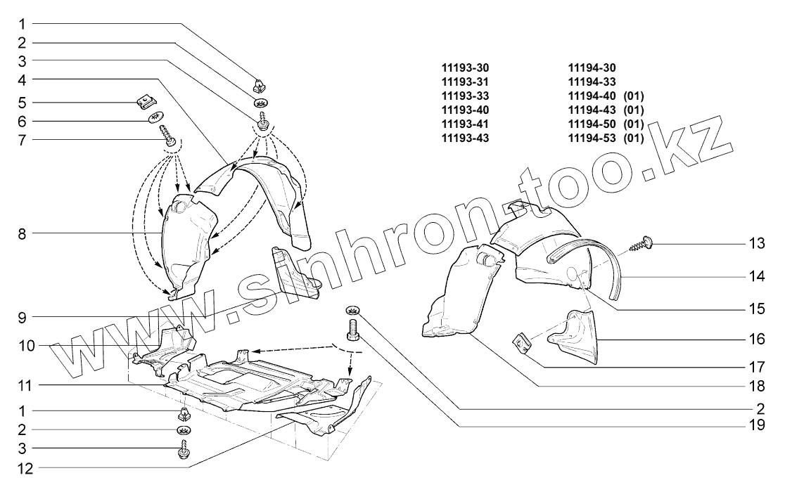 Каталог запасных частей к технике: ВАЗ LADA KALINA 1119. Щитки;Covers
