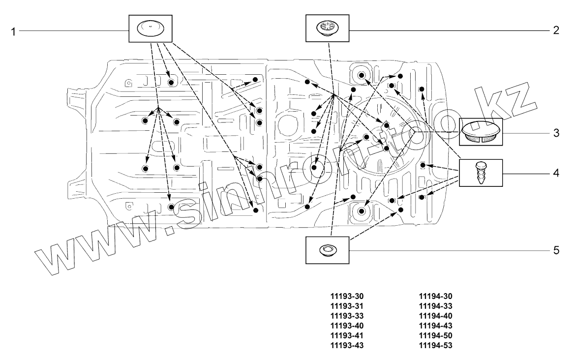 Каталог запасных частей к технике: ВАЗ LADA KALINA 1119. Схема установки заглушек;Plug Layout