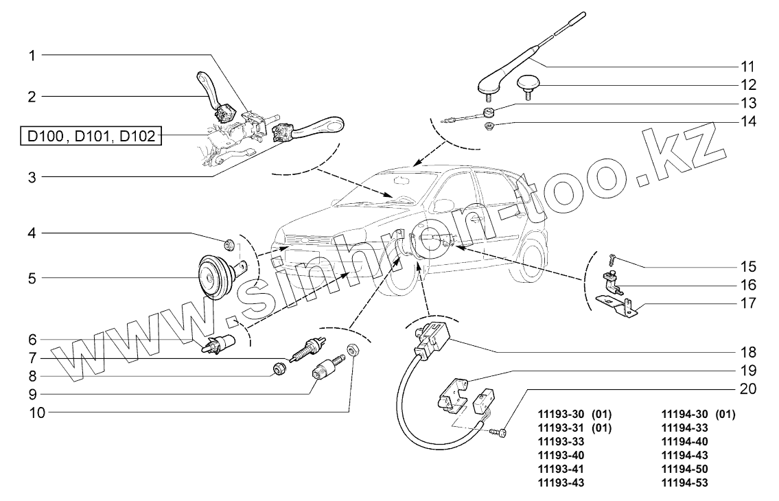 Каталог запасных частей к технике: ВАЗ LADA KALINA 1119. Сигналы;Tell-tales