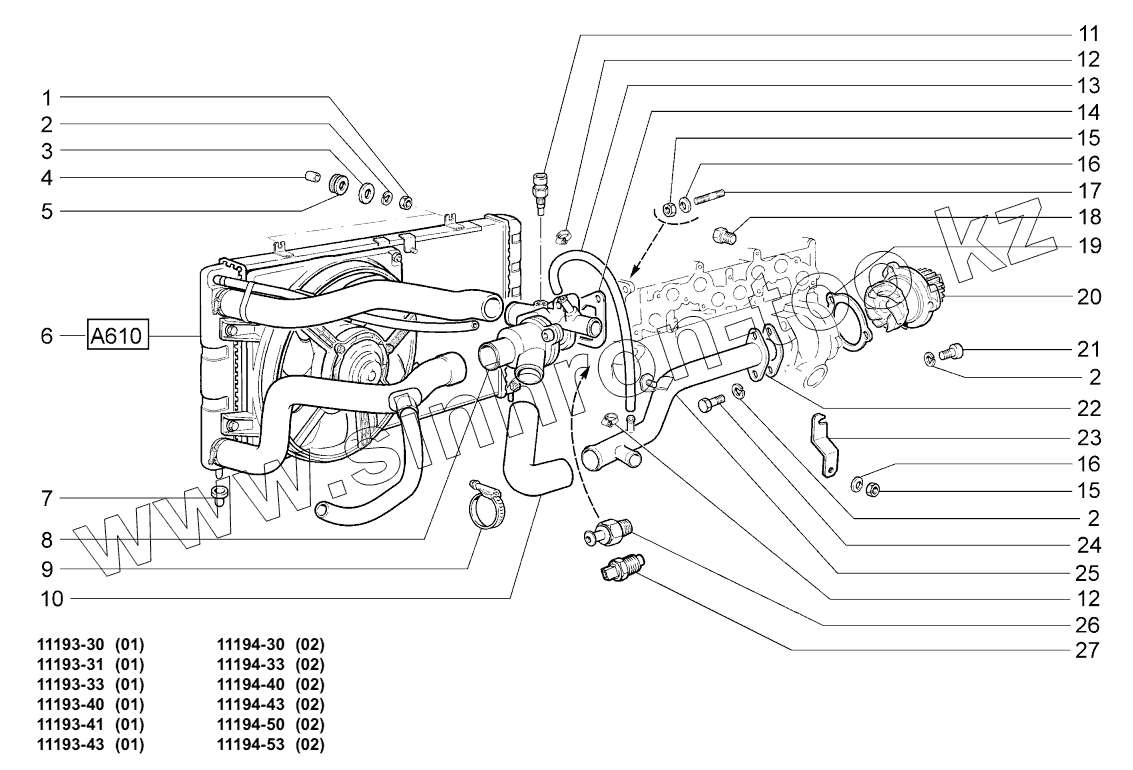 Каталог запасных частей к технике: ВАЗ LADA KALINA 1119. Система охлаждения;Cooling system
