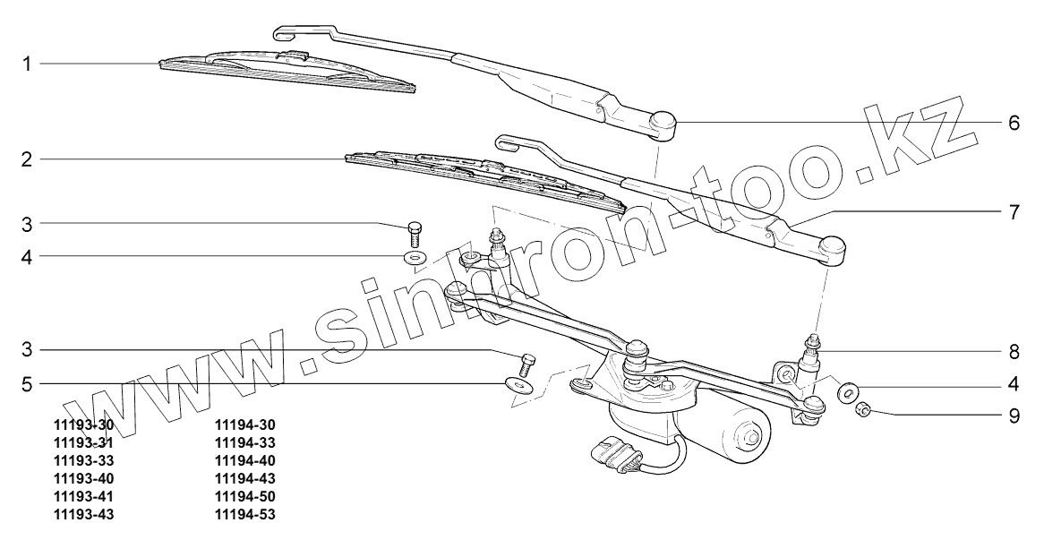 Каталог запасных частей к технике: ВАЗ LADA KALINA 1119. Стеклоочиститель передний;Front wiper