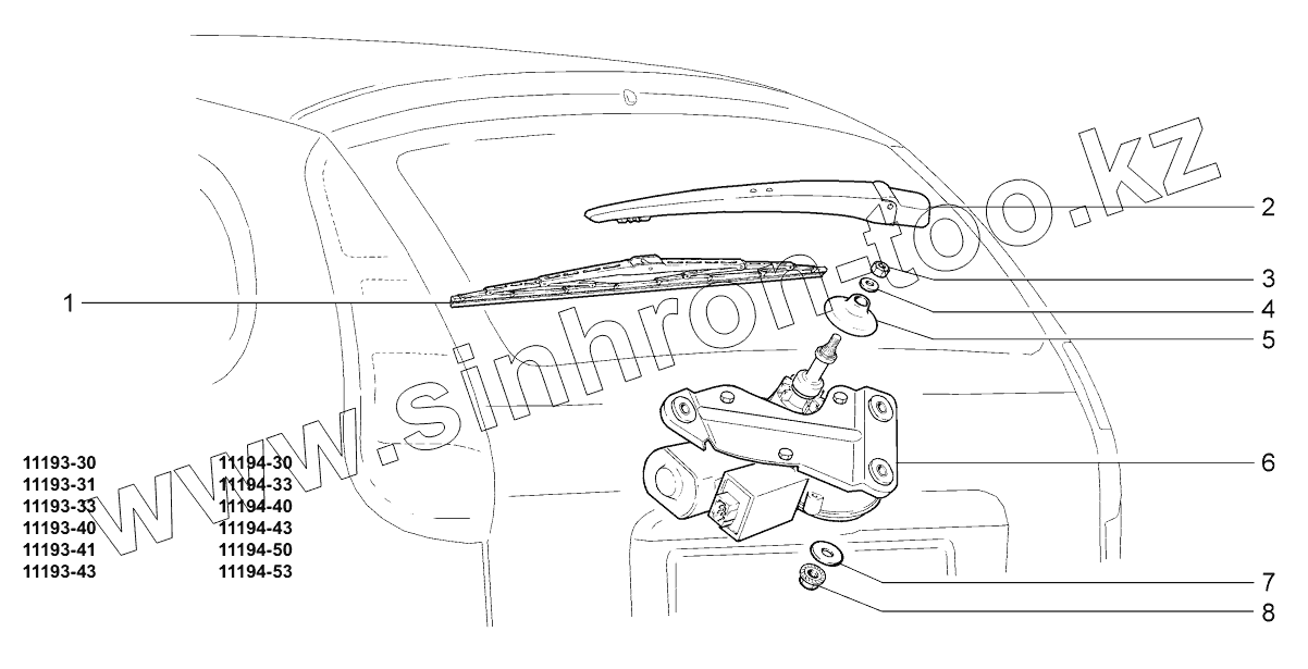 Каталог запасных частей к технике: ВАЗ LADA KALINA 1119. Стеклоочиститель задний;Rear wiper