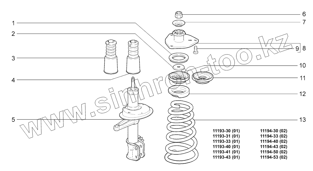 Каталог запасных частей к технике: ВАЗ LADA KALINA 1119. Стойки телескопические;Telescopic struts