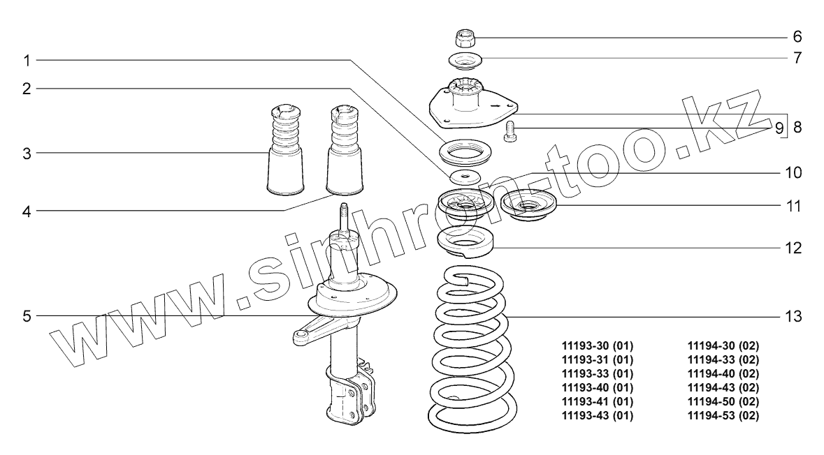 Каталог запасных частей к технике: ВАЗ LADA KALINA 1119. Стойки телескопические;Telescopic struts
