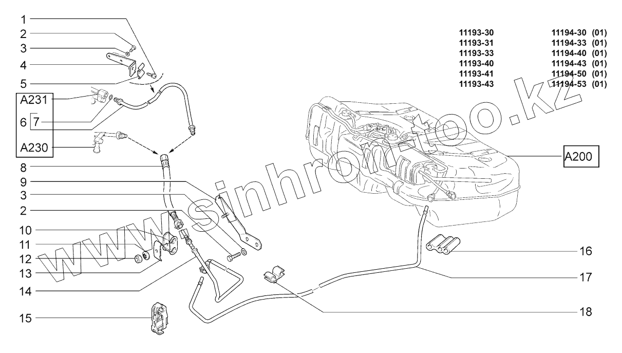 Каталог запасных частей к технике: ВАЗ LADA KALINA 1119. Трубопроводы топливные;Fuel lines