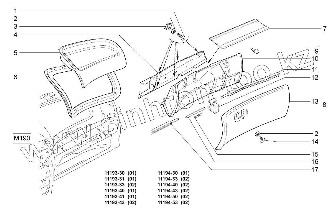 Каталог запасных частей к технике: ВАЗ LADA KALINA 1119. Ящик вещевой;Glove box
