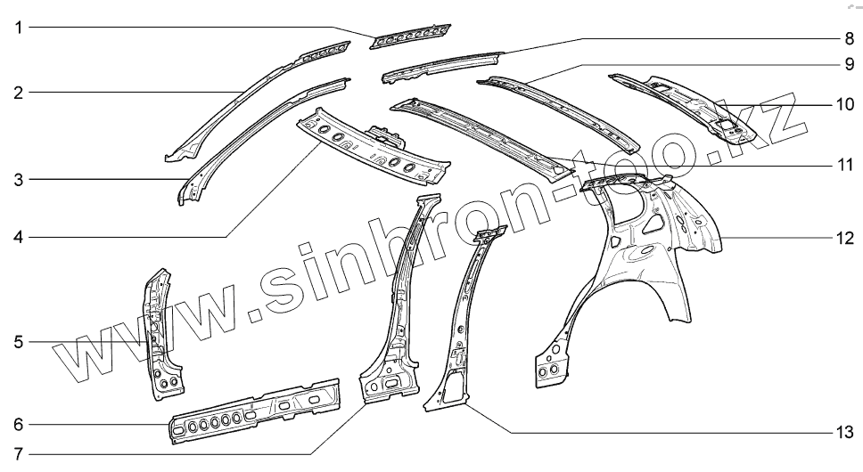 Каталог запасных частей к технике: ВАЗ LADA Kalina 1119 Sport. Элементы боковины и задка
