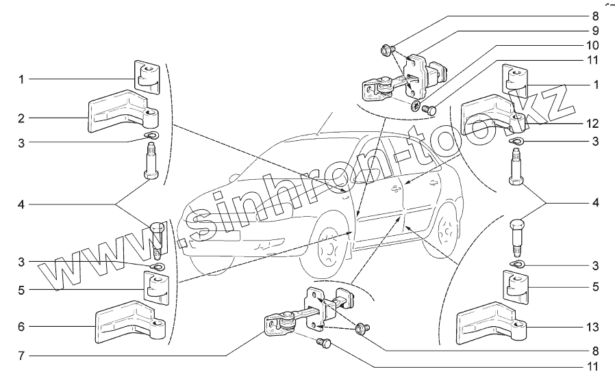 Каталог запасных частей к технике: ВАЗ LADA Kalina 1119 Sport. Петли дверей
