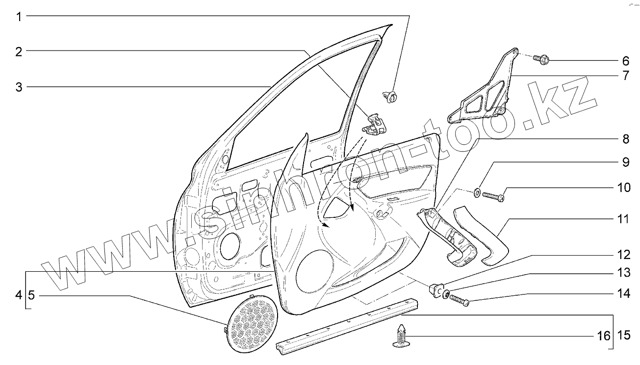 Каталог запасных частей к технике: ВАЗ LADA Kalina 2192, 2194. Дверь передняя правая
