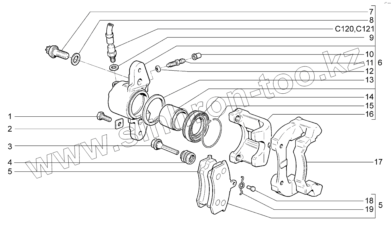 Каталог запасных частей к технике: ВАЗ LADA Kalina 2192, 2194. Элементы передних тормозов