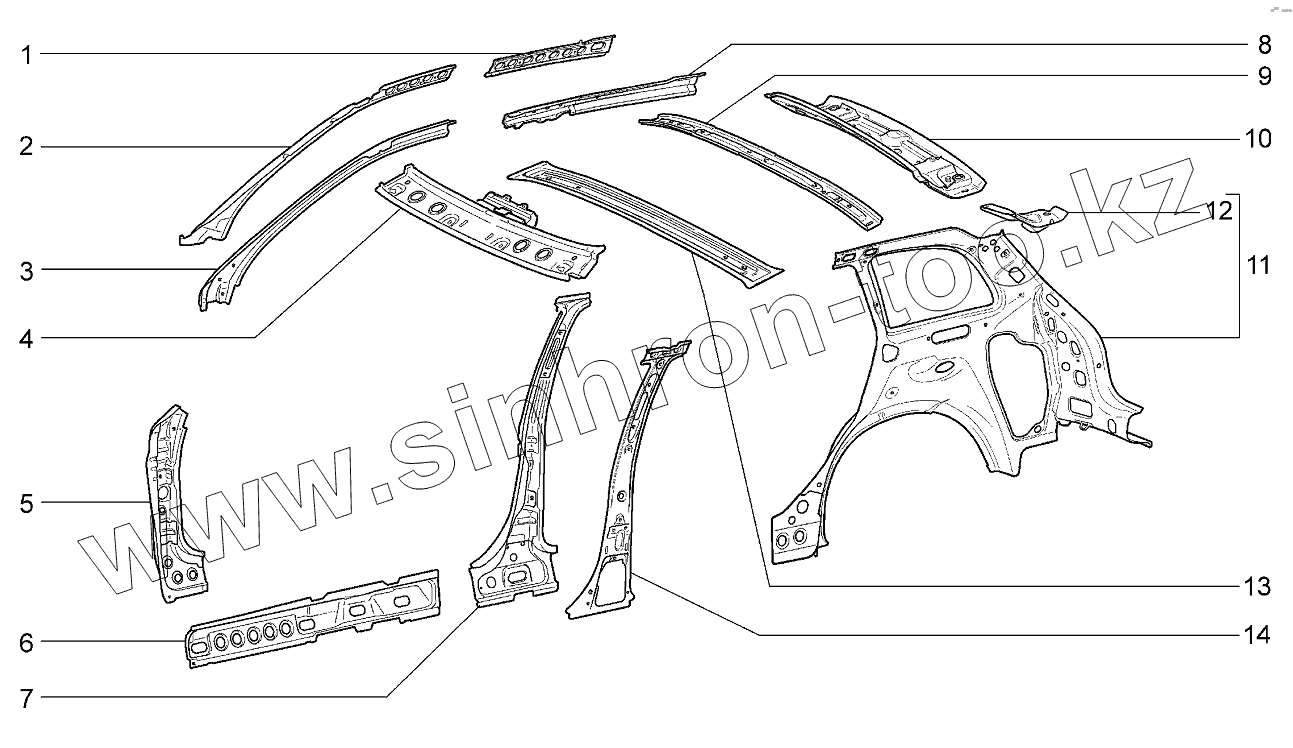 Каталог запасных частей к технике: ВАЗ LADA Kalina 2192, 2194. Каркас боковины и задка