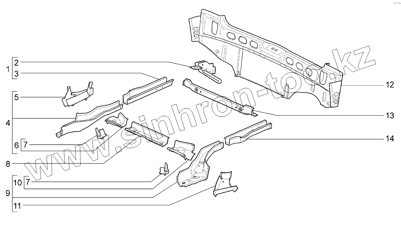 Каталог запасных частей к технике: ВАЗ LADA Kalina 2192, 2194. Каркас заднего пола