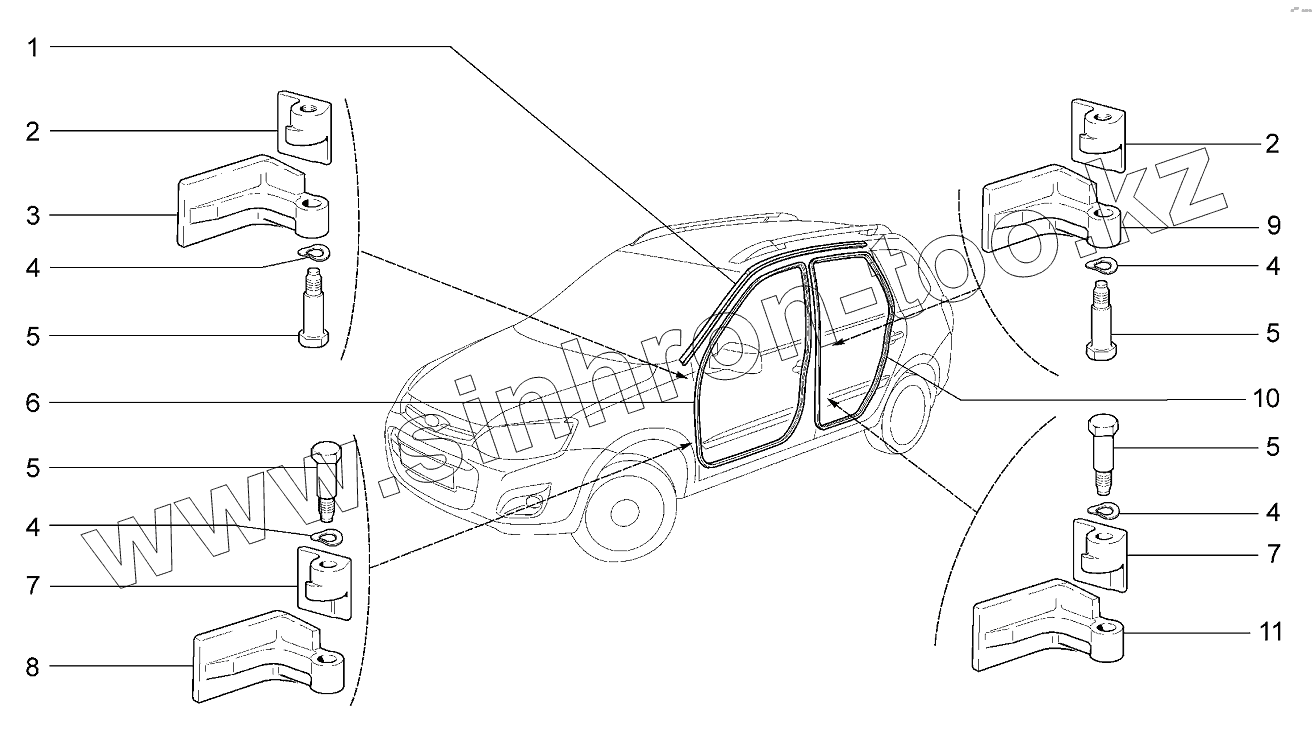Каталог запасных частей к технике: ВАЗ LADA Kalina 2192, 2194. Навеска боковых дверей и уплотнители
