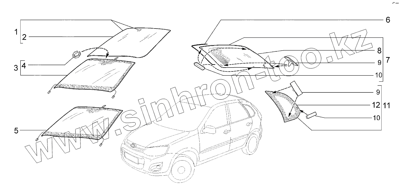 Каталог запасных частей к технике: ВАЗ LADA Kalina 2192, 2194. Окна