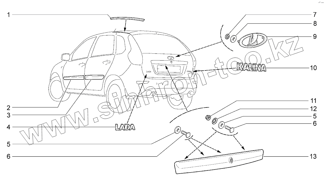 Каталог запасных частей к технике: ВАЗ LADA Kalina 2192, 2194. Орнаменты и накладки облицовочные