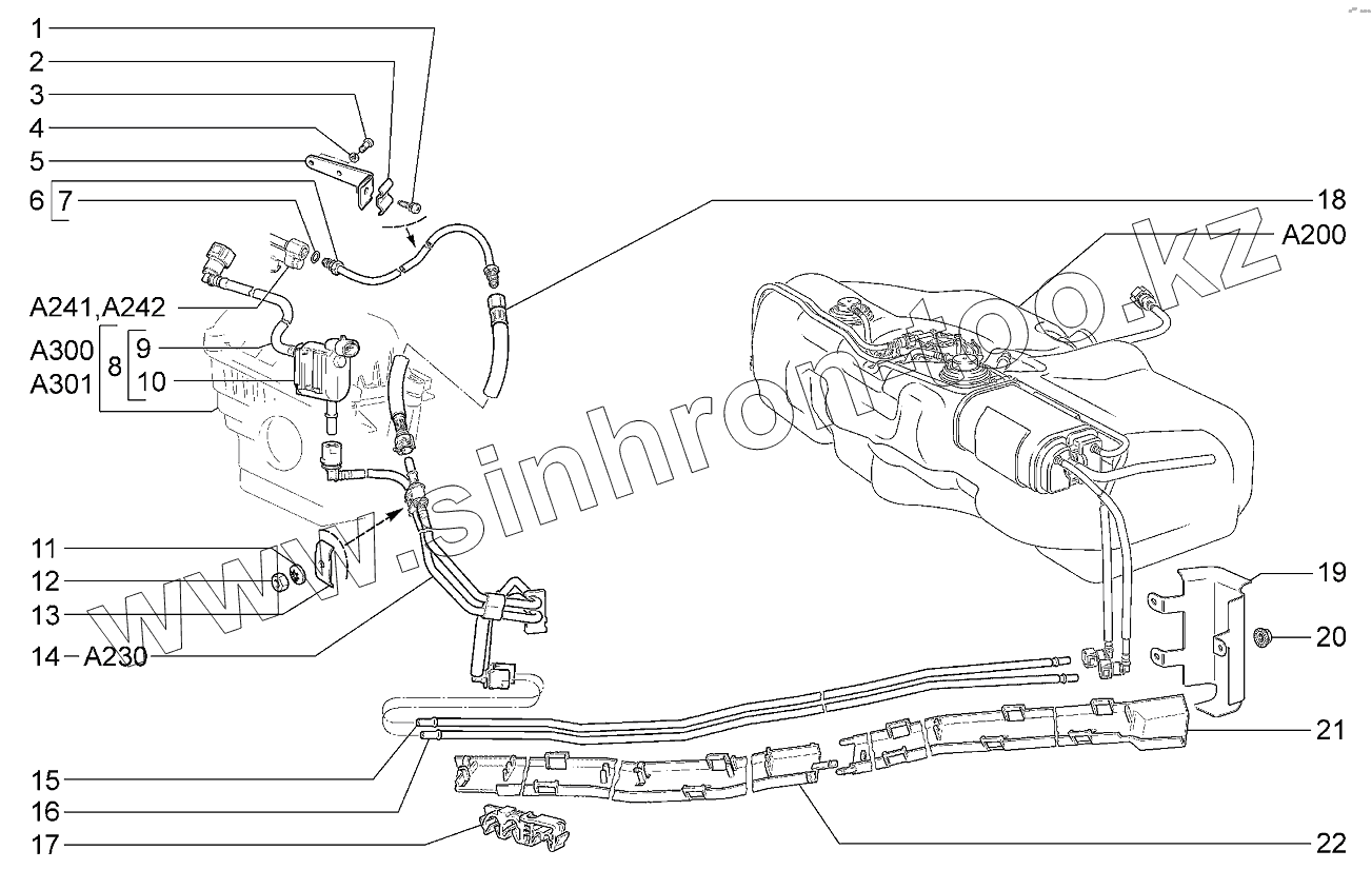 Каталог запасных частей к технике: ВАЗ LADA Kalina 2192, 2194. Трубопроводы топливный и паровой
