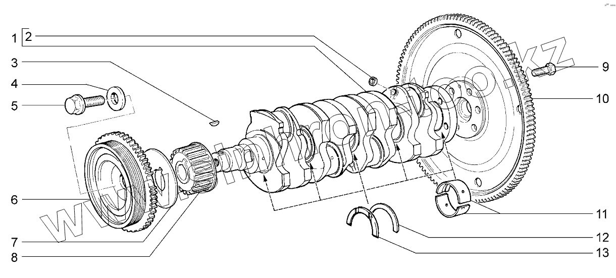 Каталог запасных частей к технике: ВАЗ LADA Kalina 2192, 2194. Вал коленчатый и диск приводной