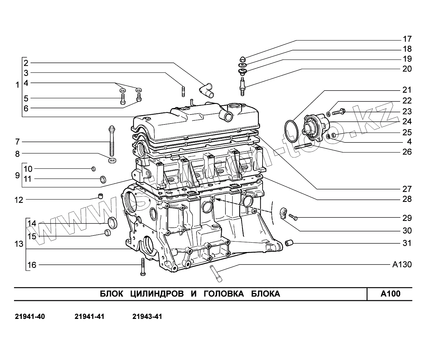 Каталог запасных частей к технике: ВАЗ LADA Kalina 2194. A100. Блок цилиндров и головка блока