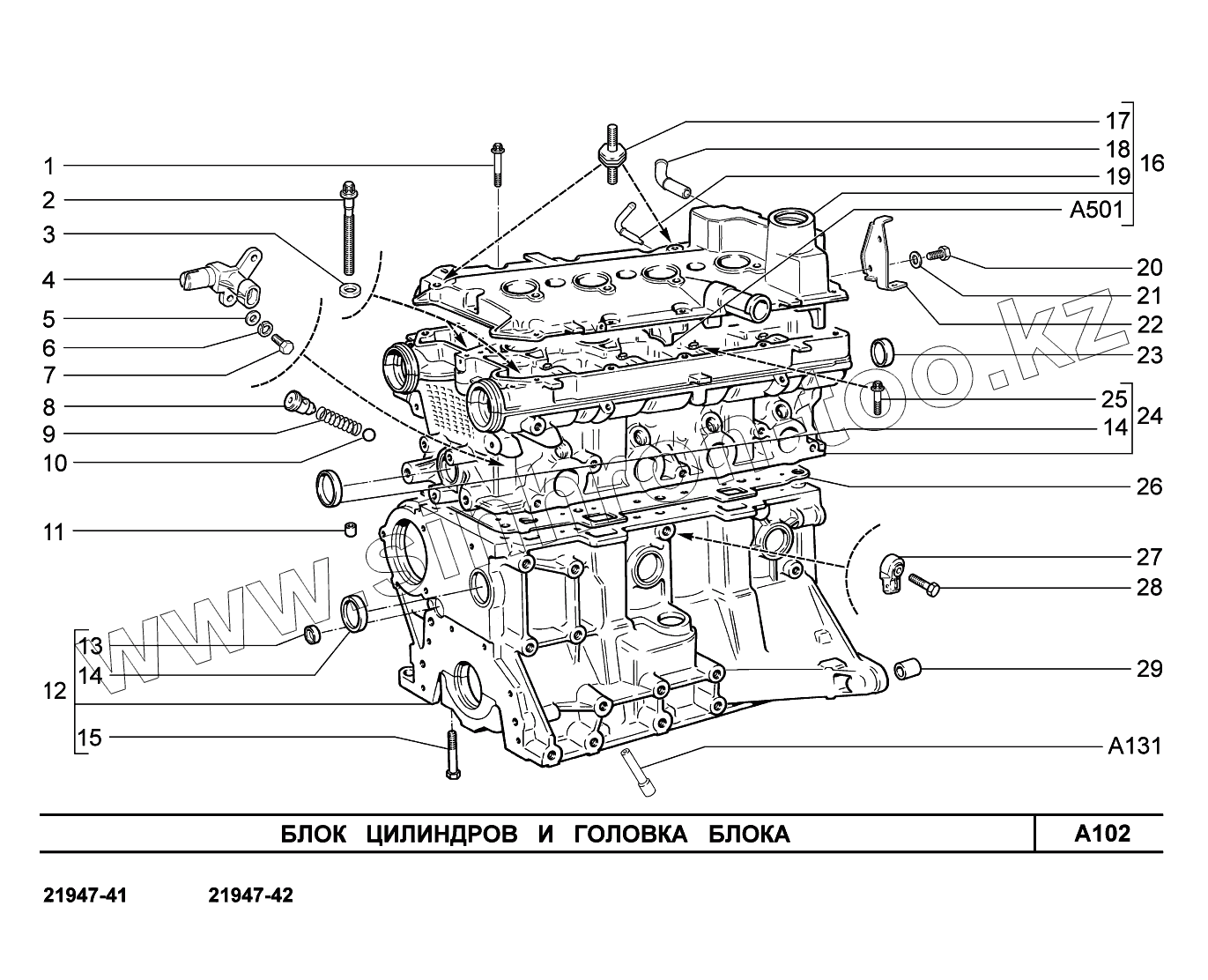 Каталог запасных частей к технике: ВАЗ LADA Kalina 2194. A102. Блок цилиндров и головка блока
