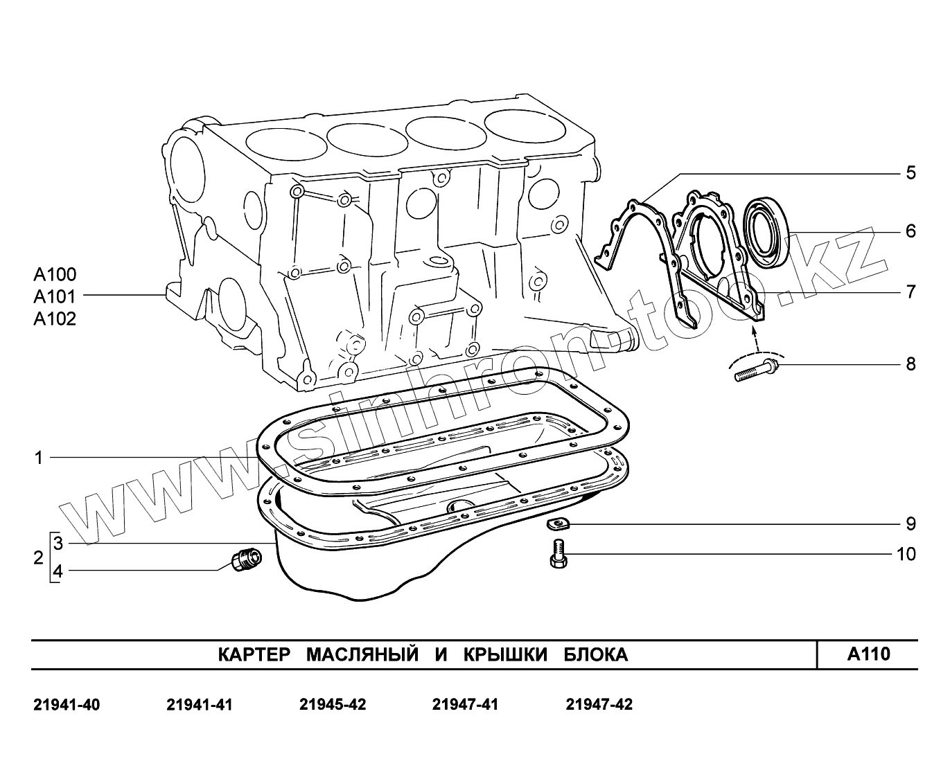 A110. Картер масляный и крышки блока
