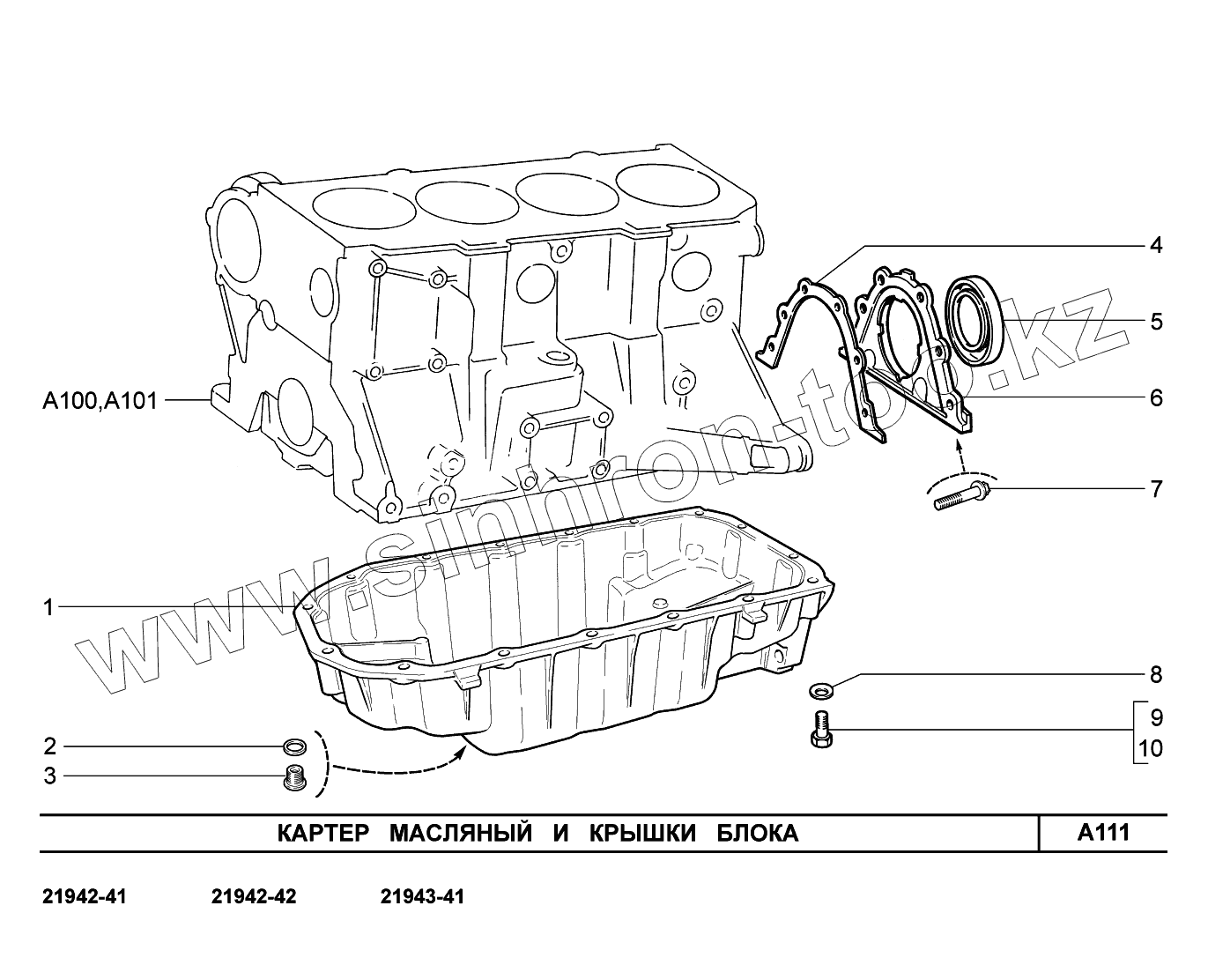 Каталог запасных частей к технике: ВАЗ LADA Kalina 2194. A111. Картер масляный и крышки блока