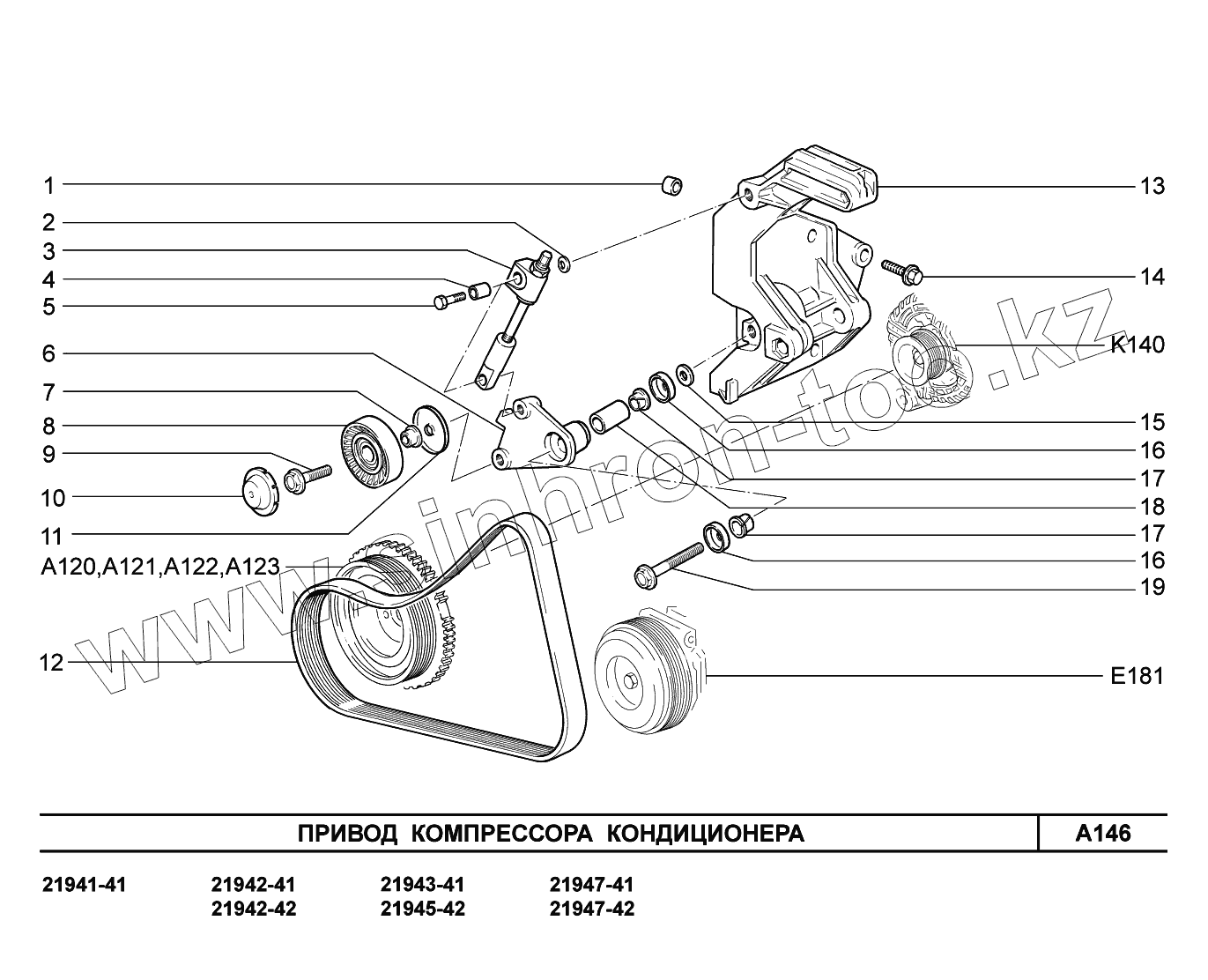 Каталог запасных частей к технике: ВАЗ LADA Kalina 2194. A146. Привод компрессора кондиционера