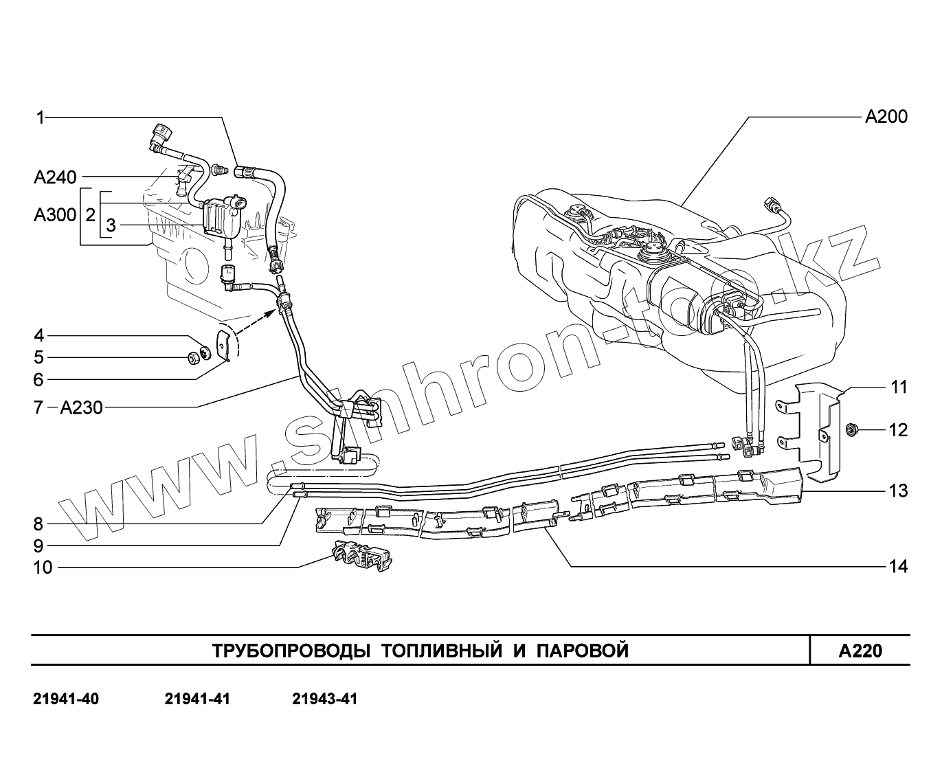 Каталог запасных частей к технике: ВАЗ LADA Kalina 2194. A220. Трубопроводы топливный и паровой