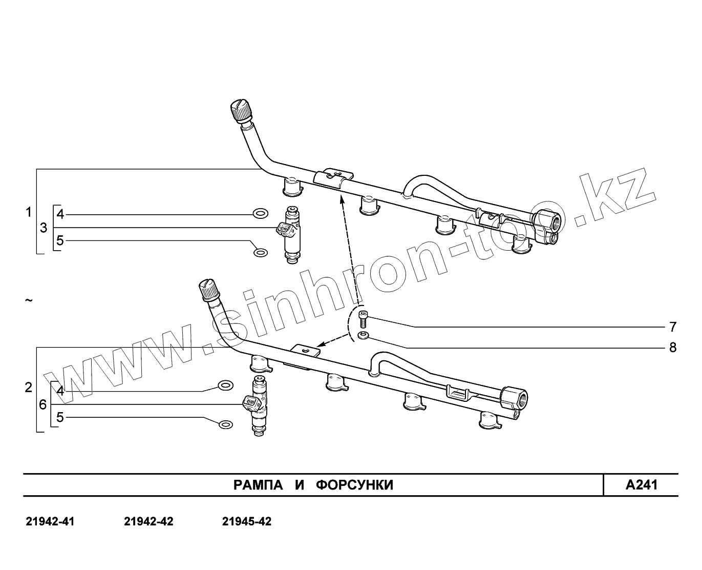 Каталог запасных частей к технике: ВАЗ LADA Kalina 2194. A241. Рампа и форсунки