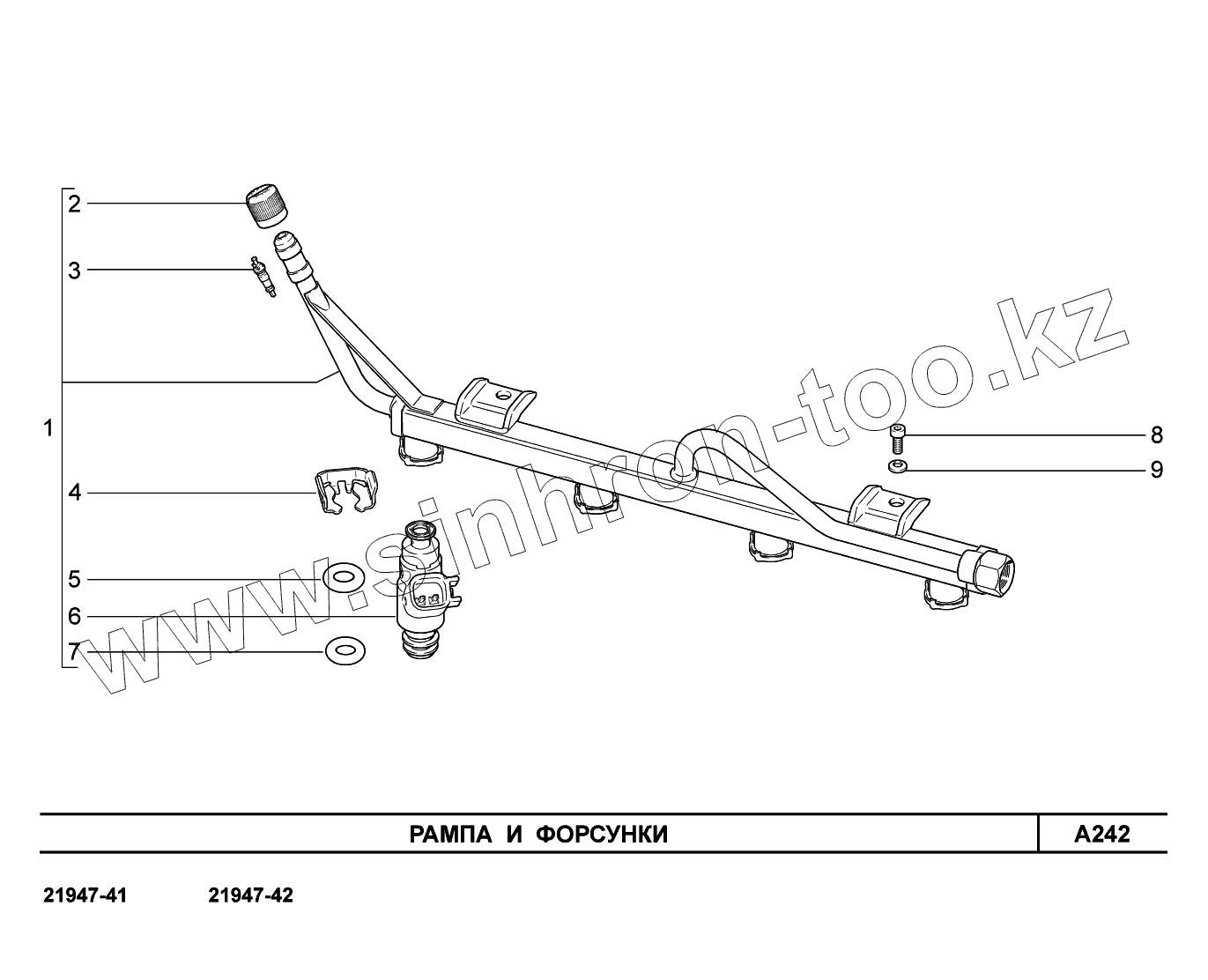 Каталог запасных частей к технике: ВАЗ LADA Kalina 2194. A242. Рампа и форсунки