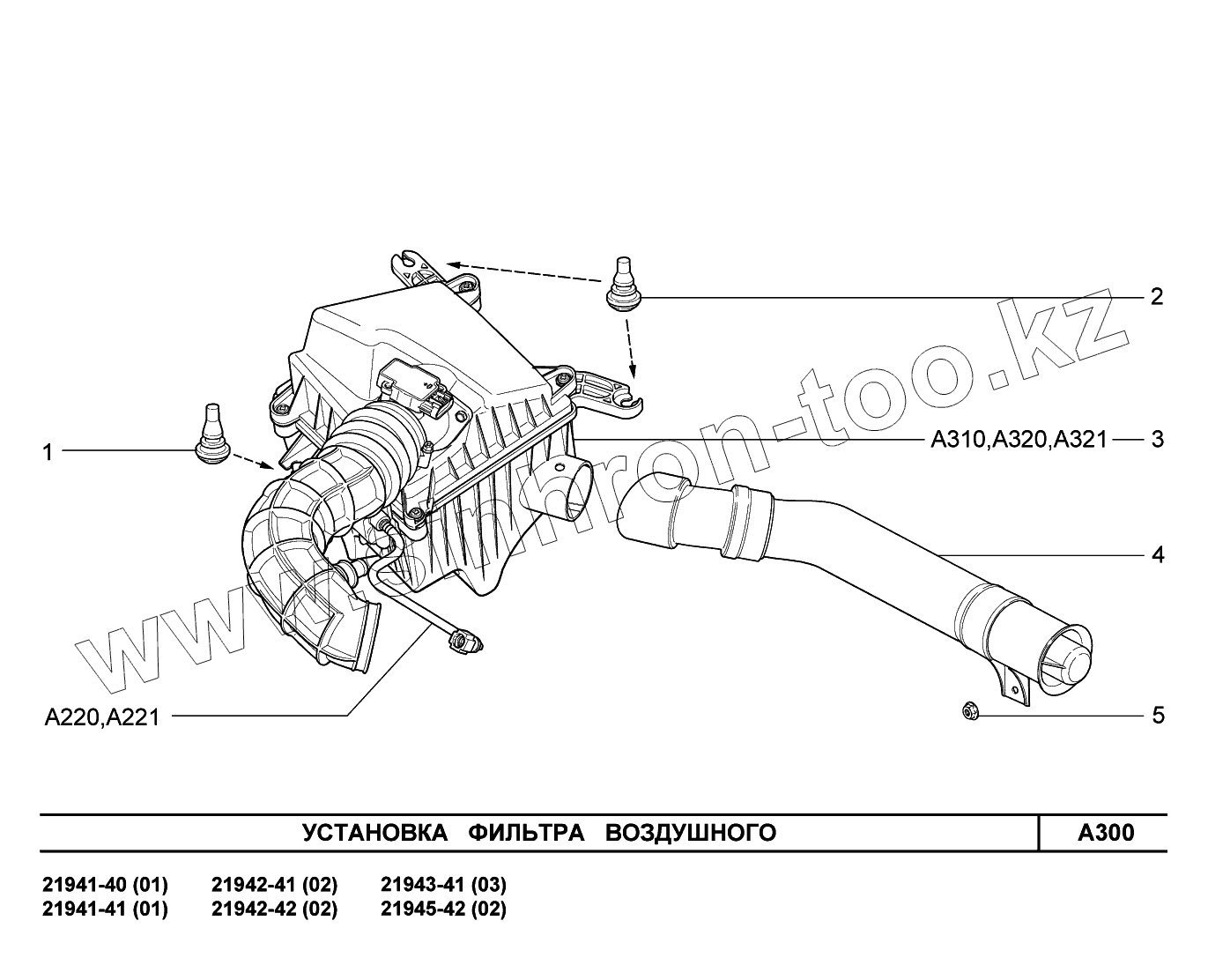 Каталог запасных частей к технике: ВАЗ LADA Kalina 2194. A300. Установка фильтра воздушного