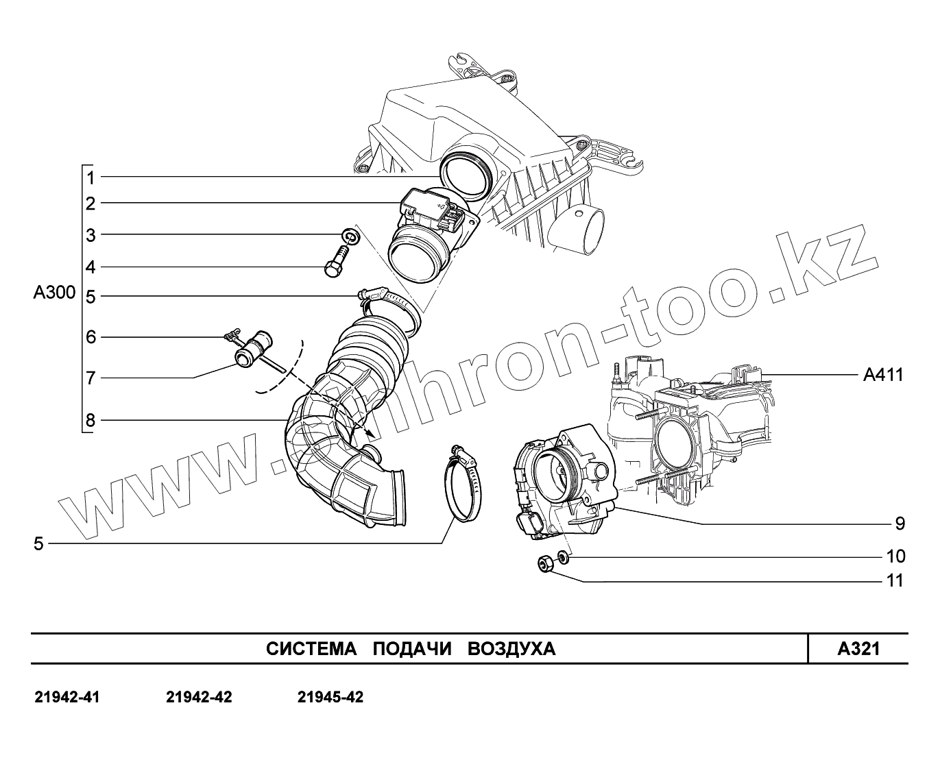 Каталог запасных частей к технике: ВАЗ LADA Kalina 2194. A321. Система подачи воздуха