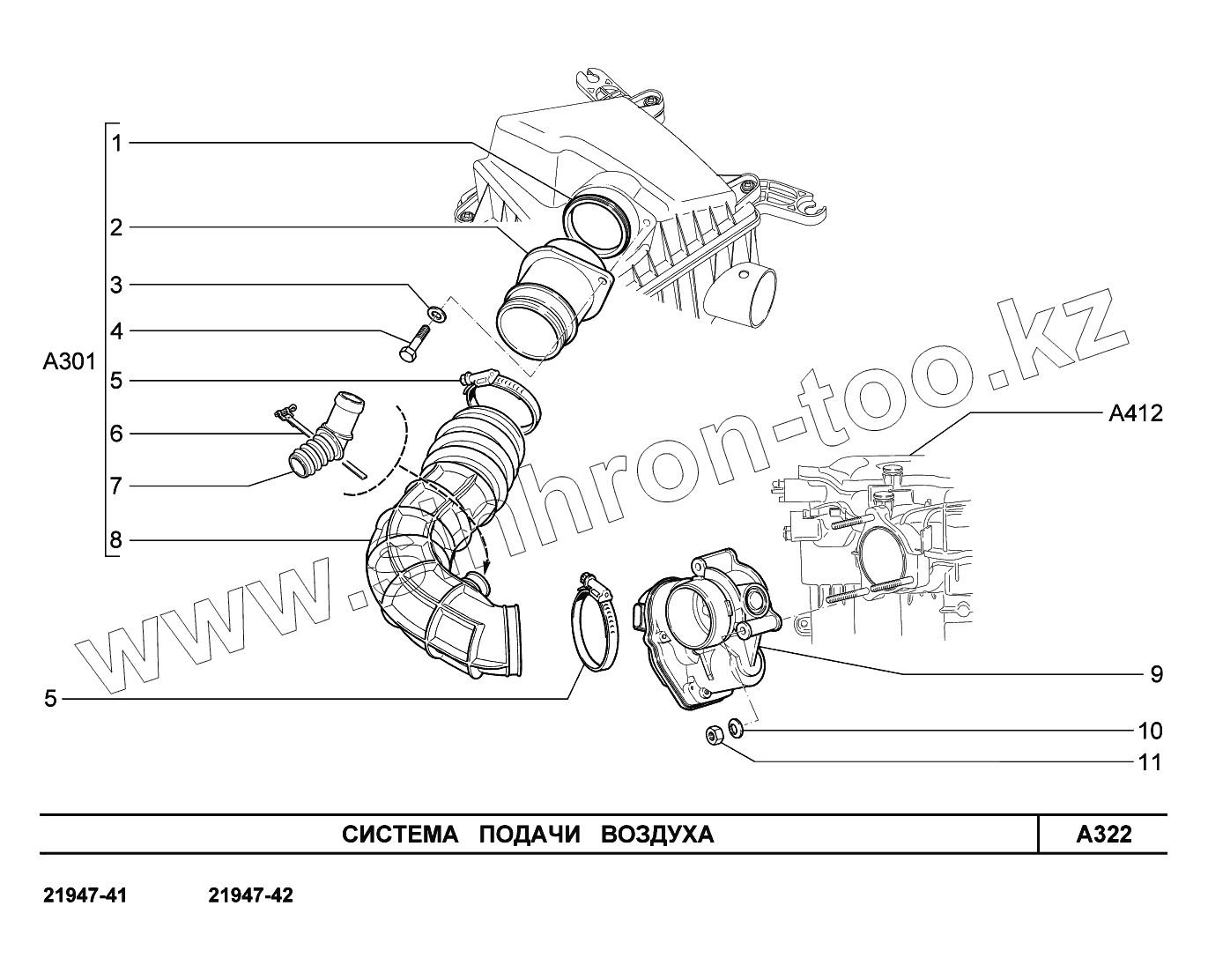 Каталог запасных частей к технике: ВАЗ LADA Kalina 2194. A322. Система подачи воздуха