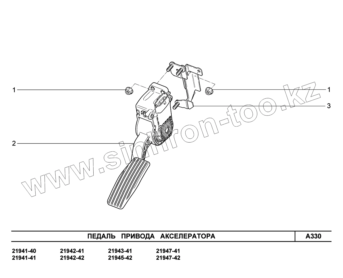 Каталог запасных частей к технике: ВАЗ LADA Kalina 2194. A330. Педаль привода акселератора