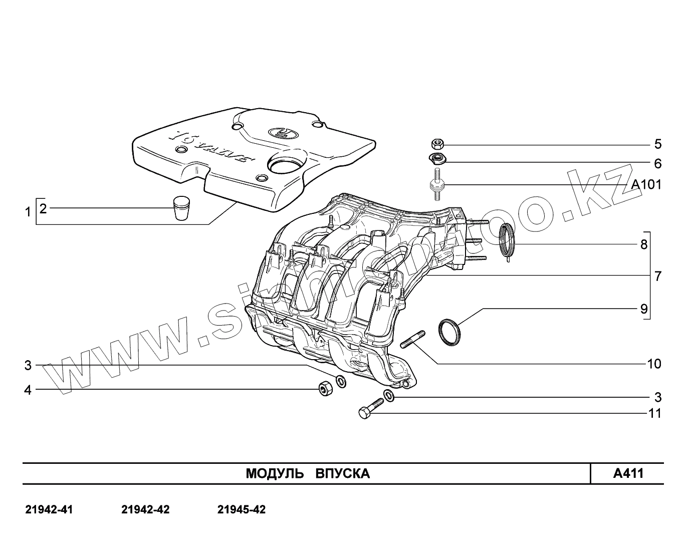 Каталог запасных частей к технике: ВАЗ LADA Kalina 2194. A411. Модуль впуска