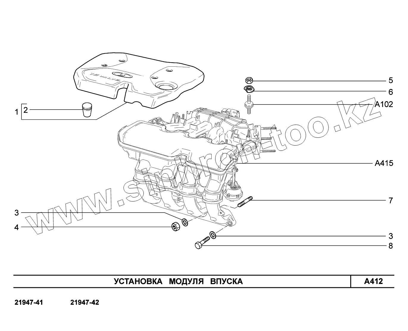 Каталог запасных частей к технике: ВАЗ LADA Kalina 2194. A412. Установка модуля впуска