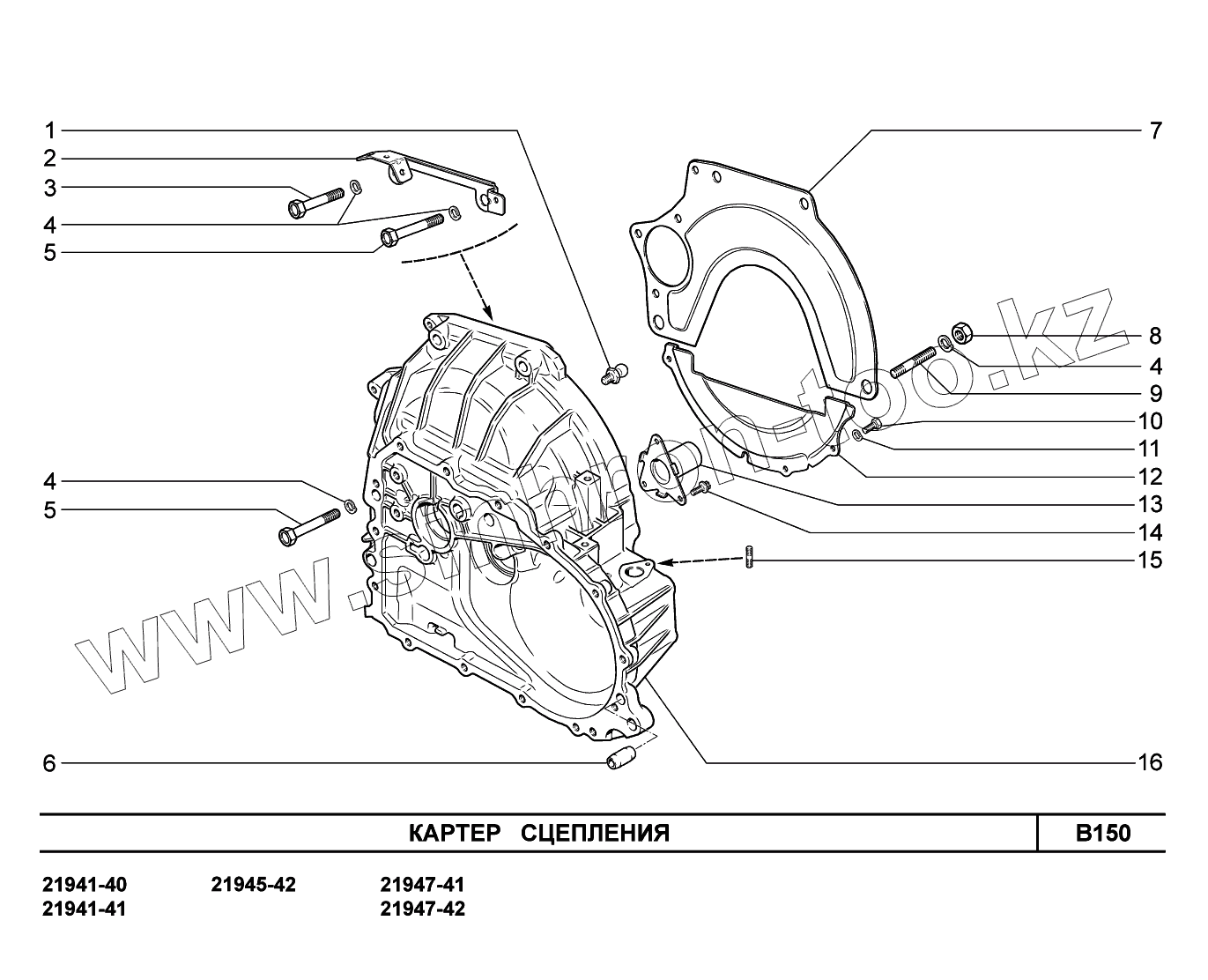Каталог запасных частей к технике: ВАЗ LADA Kalina 2194. B150. Картер сцепления