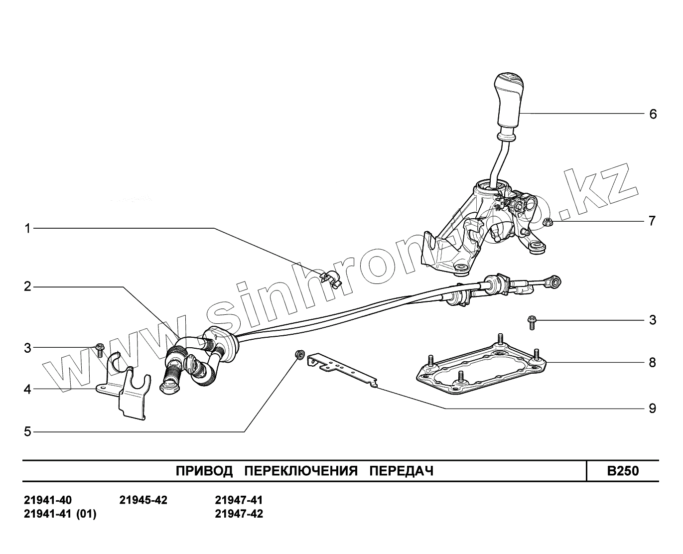 Каталог запасных частей к технике: ВАЗ LADA Kalina 2194. B250. Привод переключения передач