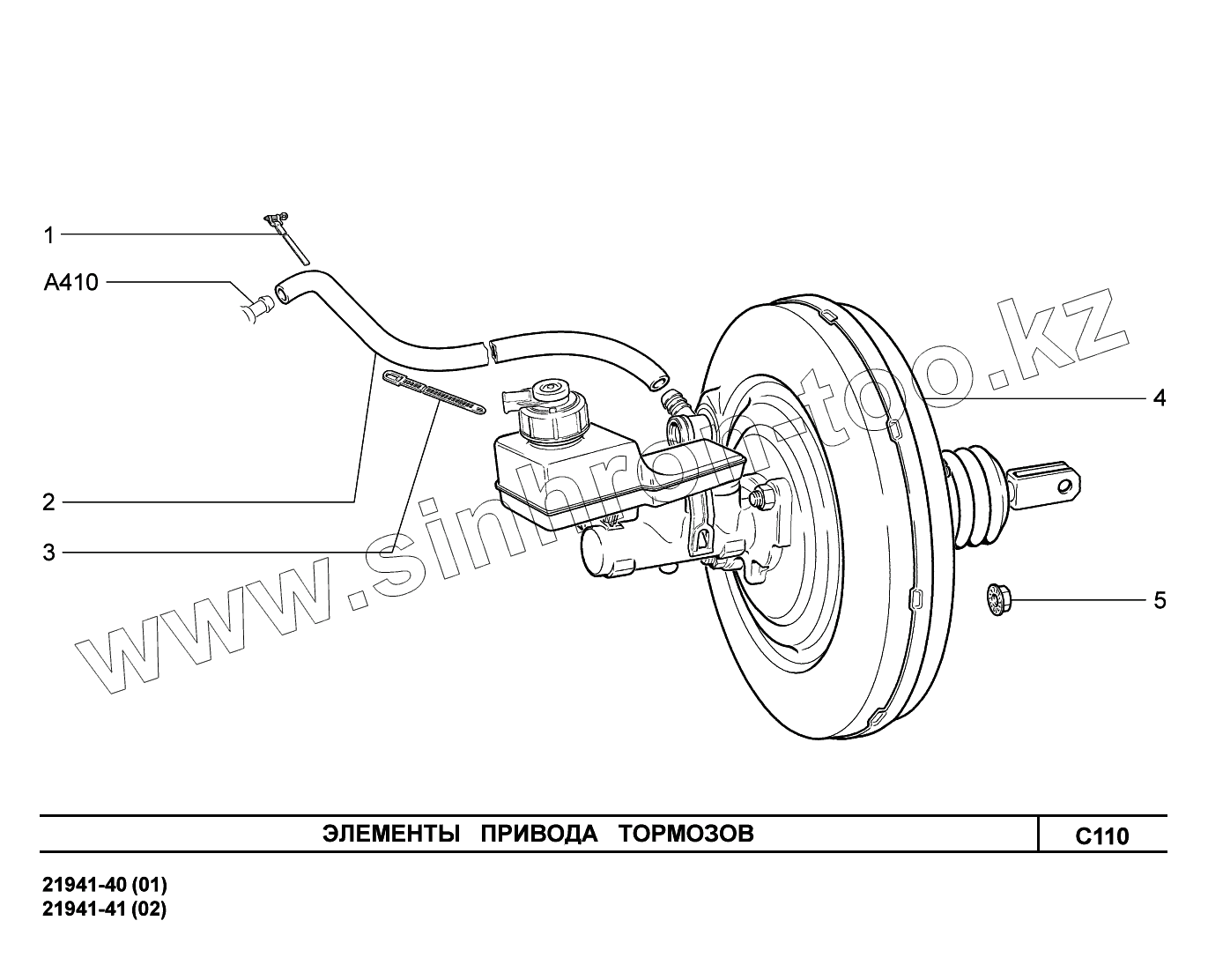 Каталог запасных частей к технике: ВАЗ LADA Kalina 2194. C110. Элементы привода тормозов