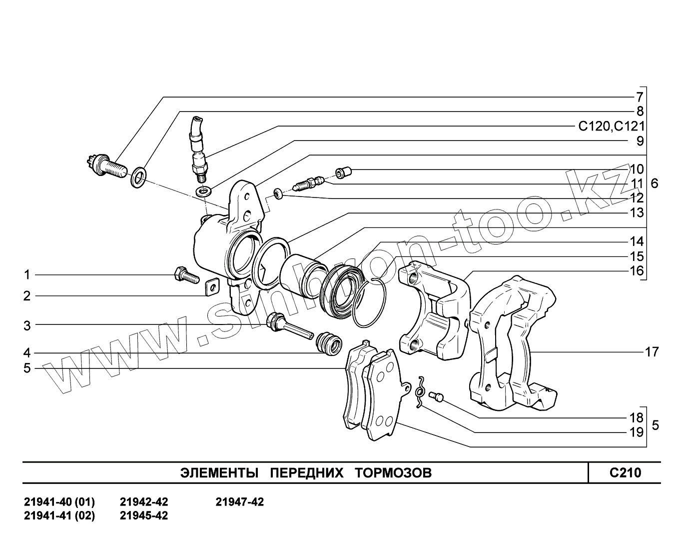 Каталог запасных частей к технике: ВАЗ LADA Kalina 2194. C210. Элементы передних тормозов