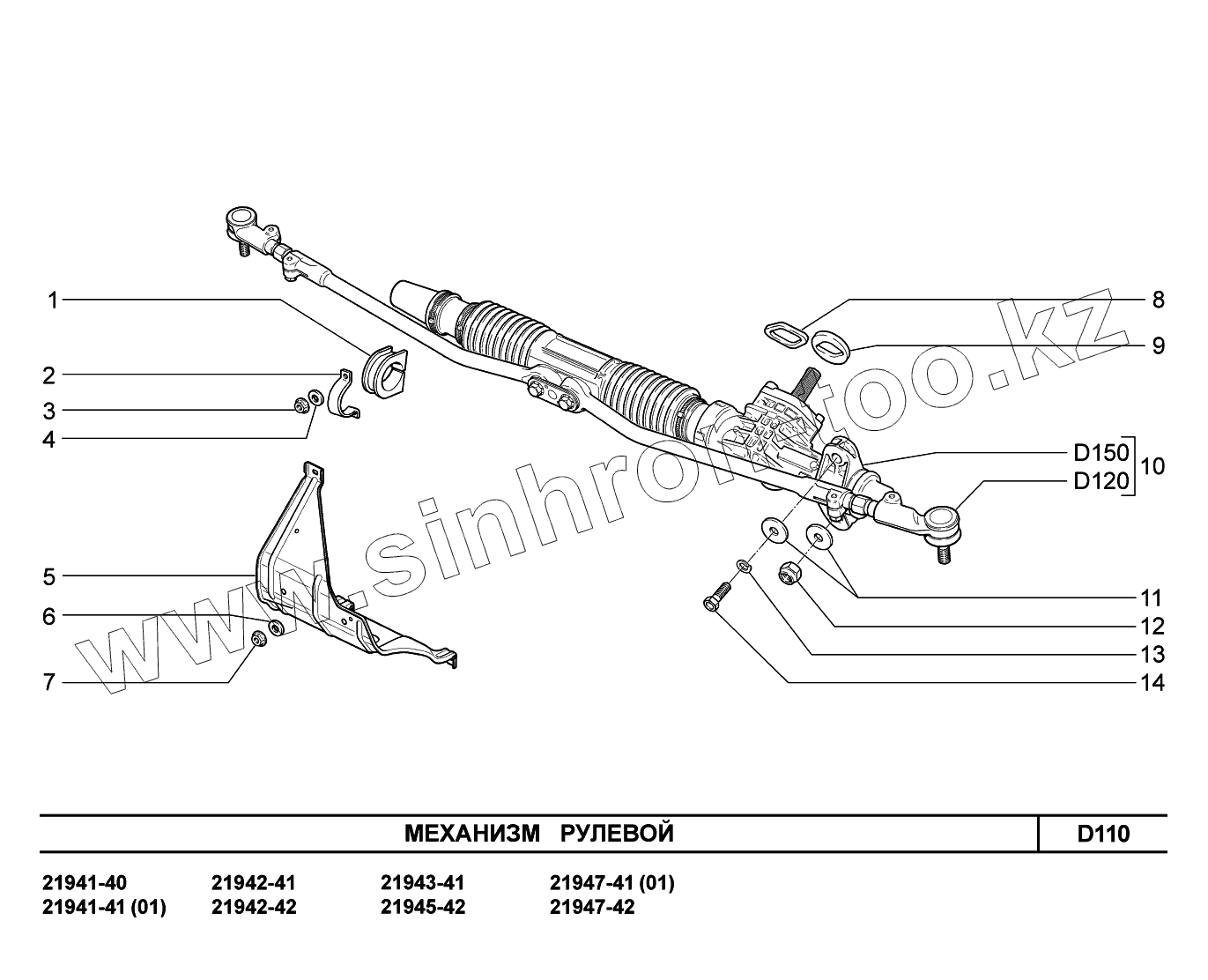 Каталог запасных частей к технике: ВАЗ LADA Kalina 2194. D110. Механизм рулевой