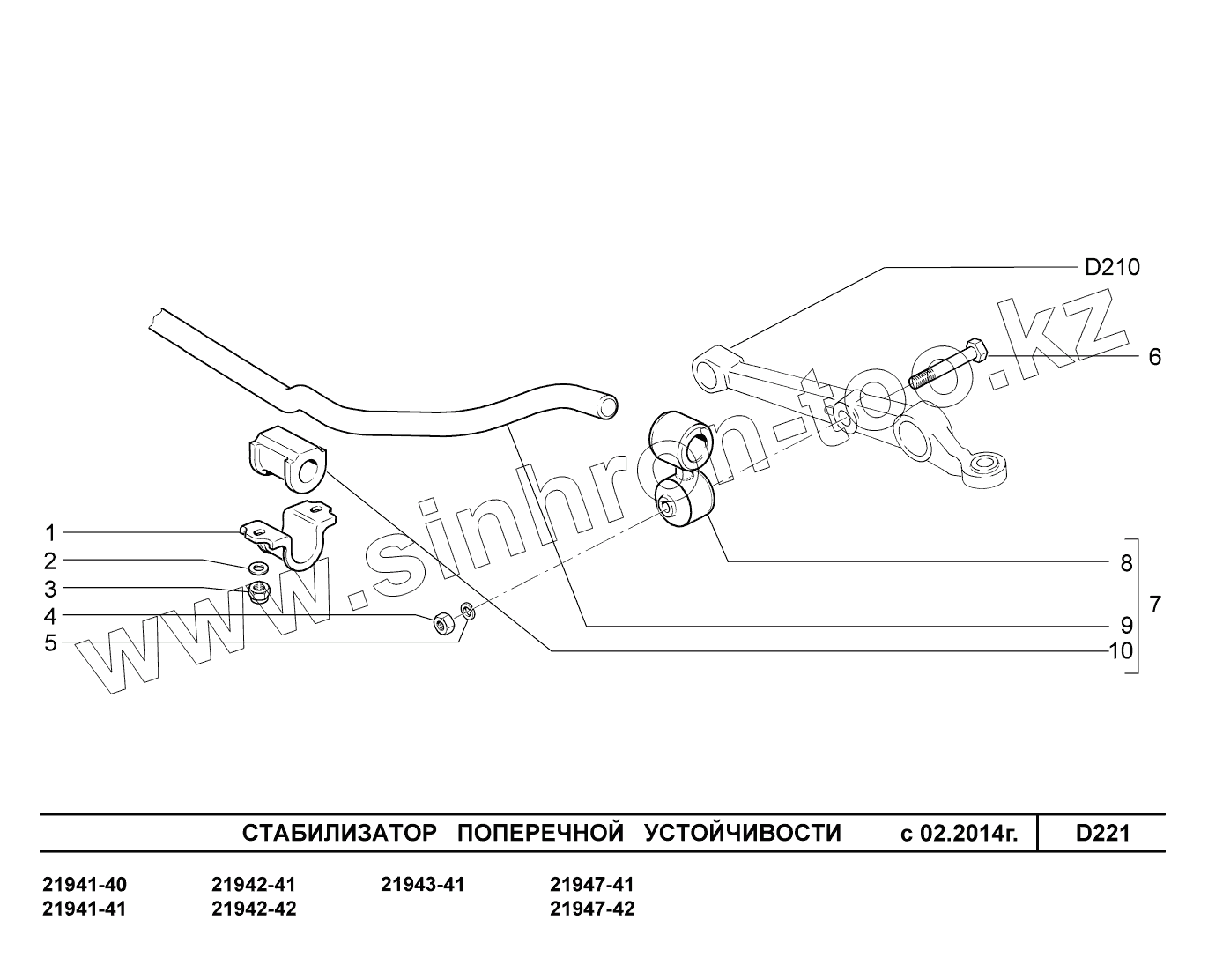 Каталог запасных частей к технике: ВАЗ LADA Kalina 2194. D221. Стабилизатор поперечной устойчивости