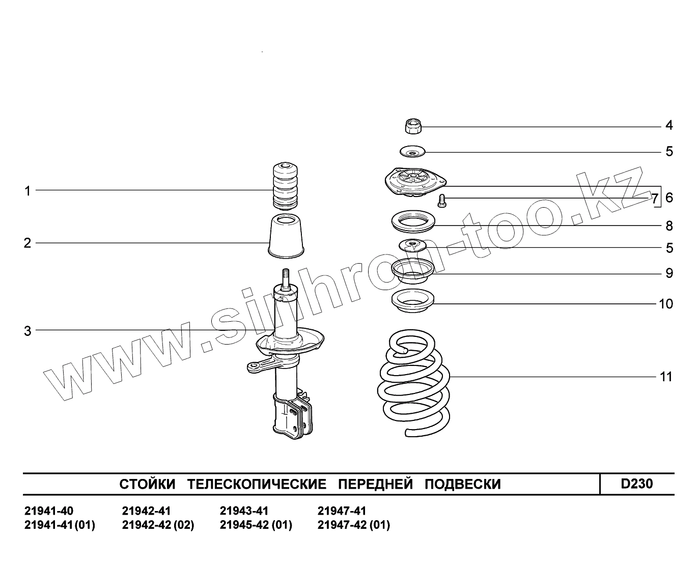 Каталог запасных частей к технике: ВАЗ LADA Kalina 2194. D230. Стойки телескопические передней подвески