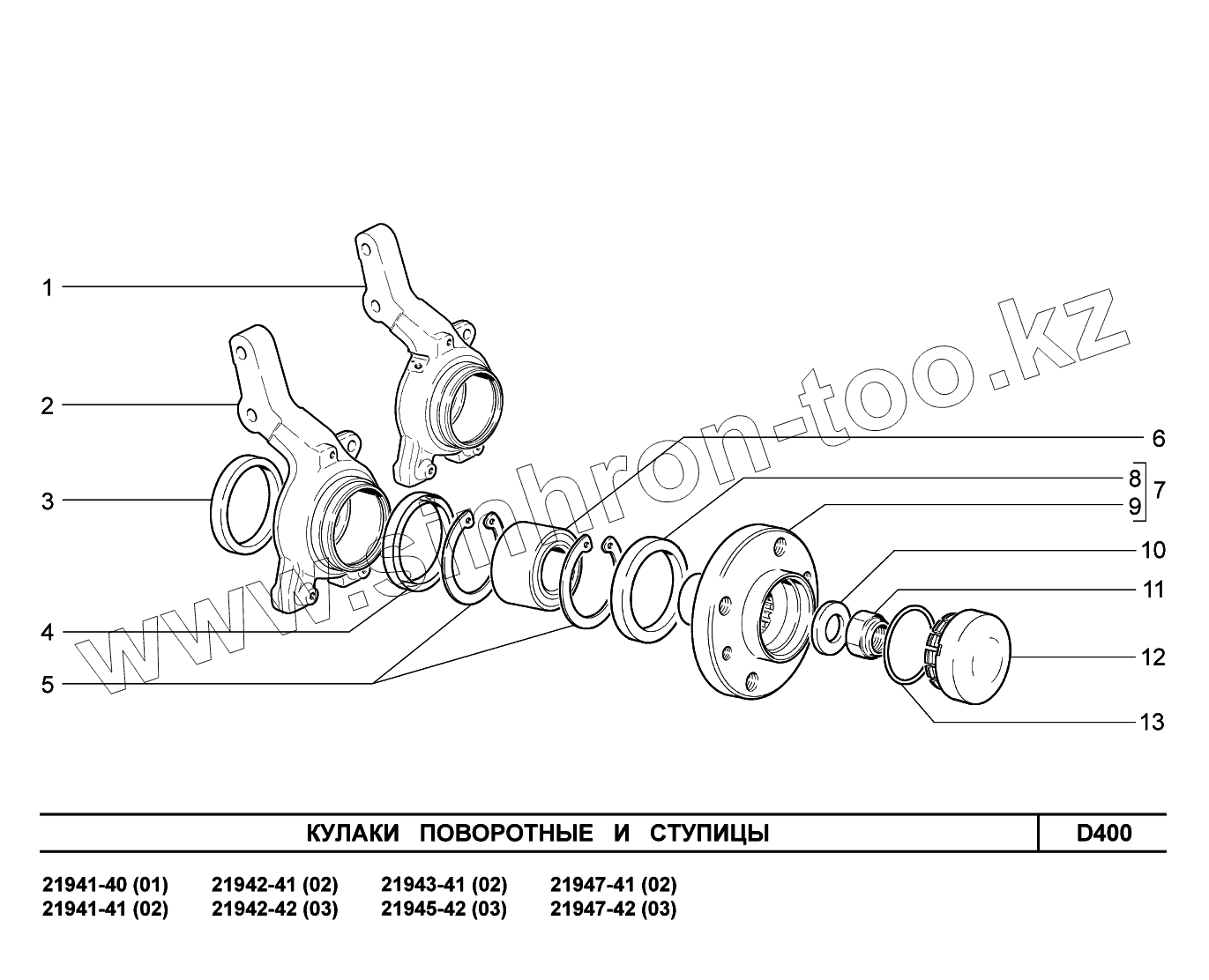 D400. Кулаки поворотные и ступицы