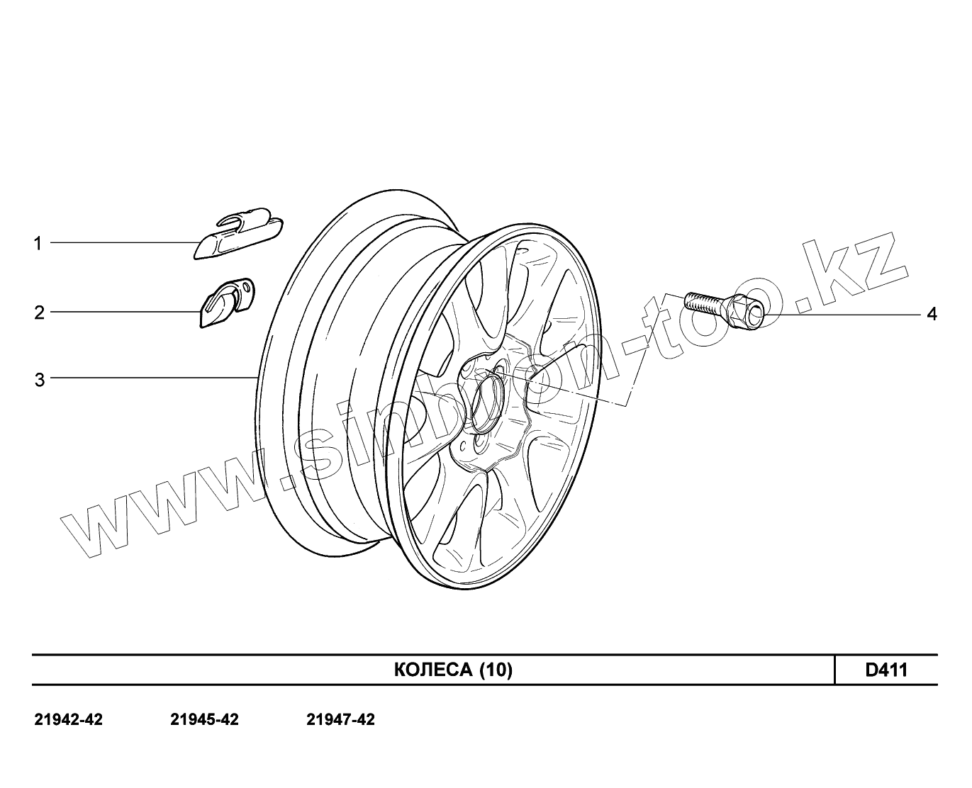 Каталог запасных частей к технике: ВАЗ LADA Kalina 2194. D411. Колеса