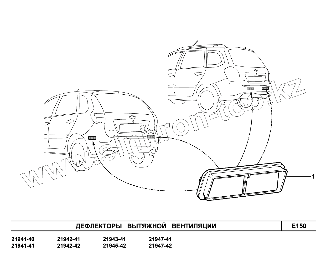 Каталог запасных частей к технике: ВАЗ LADA Kalina 2194. E150. Дефлекторы вытяжной вентиляции